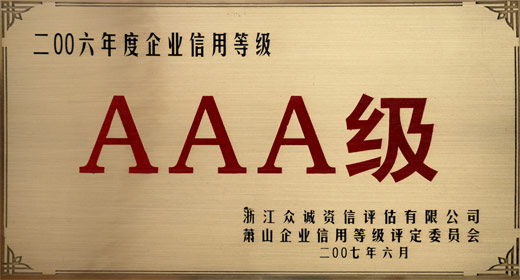 一九九八年~二00八年 AAA級企業信用等級